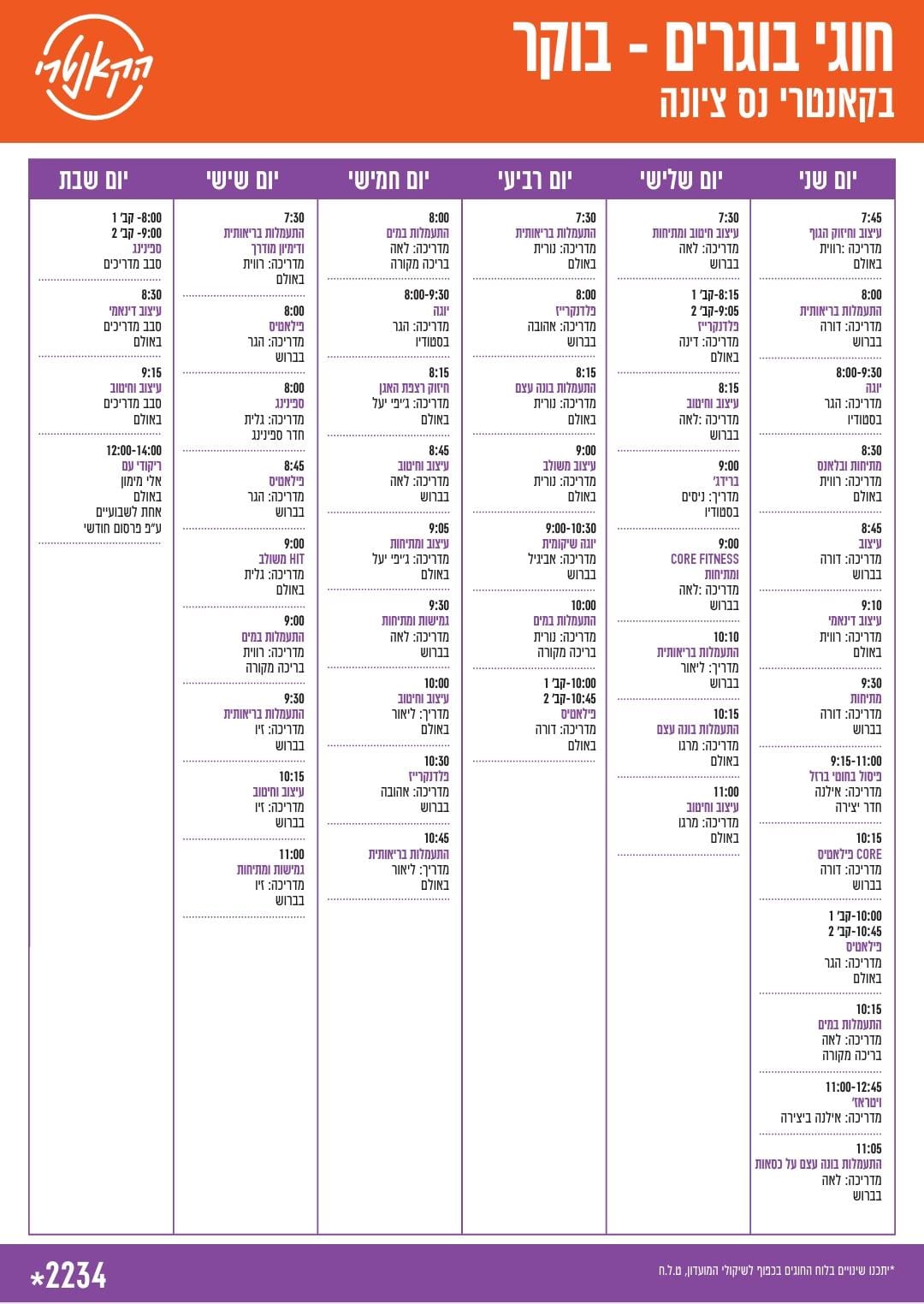 יום רביעי 3/12/25 – משעה 10:45-7:30- מחליפה יעל ג'יפי (כולל התעמלות במים)