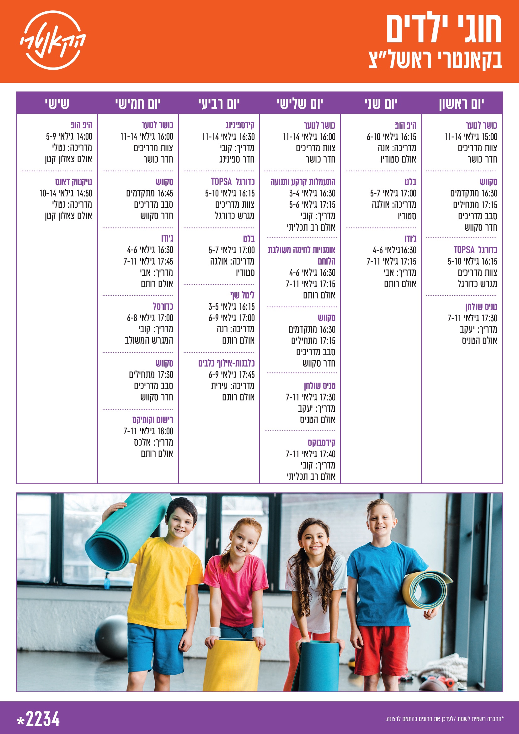 • פתיחת חוגי ילדים החל מתאריך 17/08