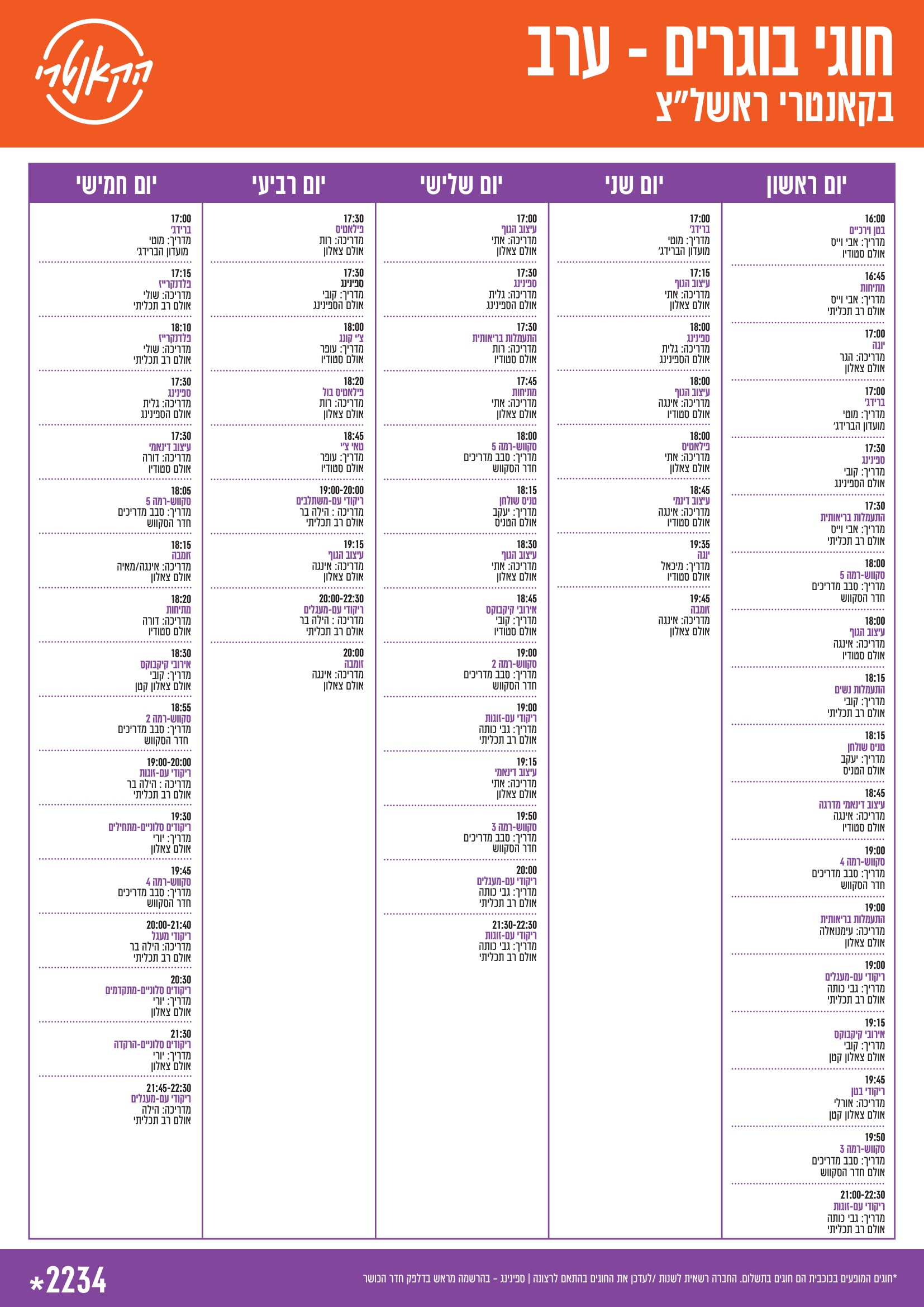 החל מתאריך 1/09 מצורפת מערכת חוגי מבוגרים בוקר / ערב